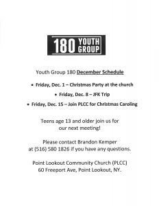 180 Youth Group December2017 Schedule